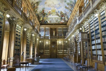 Bezpochyby jedna z nejkrásnějších knihoven světa, jež je součástí Strahovského kláštera, posloužila jako plnohodnotná náhrada za knihovnu ve Versailles, kde Jamie Fraser hrál šachy s ministrem financí Josephem Duverneyem a kde hrabě St. Germain otrávil Claire. Tyto scény se odehrávají v tzv. Filosofickém sále, jednom ze dvou (druhým je Teologický), které tvoří obdivovanou Strahovskou knihovnu. Oba sály pak spojuje chodba s kabinetem kuriozit. Zatímco Strahovský klášter je nejstarším českým premonstrátským klášterem, založen byl již roku 1143, knihovna je barokní. Její nejstarší částí je Teologický sál ze 17. století, hlavní Filosofický sál s vysokou klenbou vznikl přestavbou sýpky mezi lety 1783 – 1785.