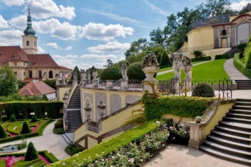 V jedné ze scén 2. řady seriálu se Jamie a Claire pohybují v dokonale symetrické zahradě, odpovídající francouzskému Versailles. Natáčení však neprobíhalo ani ve Versailles ani na skotském Drummond Castle (kde se točila převážná většina scén z Versailles), ale v pražské Vrtbovské zahradě. Jedná se o malostranskou barokní zahradu italského typu, která je součástí Vrtbovského paláce v Karmelitské ulici. Zahrada pochází z počátku 18. století a je dílem českého architekta Františka Maxmiliána Kaňky. O sochařskou výzdobu se postaral Matyáš Bernard Braun, známý svými famózními díly v Kuksu a Lysé nad Labem.