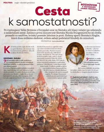 Historie boje za nezávislost Skotska, vývoj anglo-skotských vztahů, jakobitská povstání i současný politický vývoj. A vzhledem k nedávnému rozhodnutí britského Nejvyššího soudu, že Skotové si nesmí vyhlásit referendum o vlastní nezávislosti bez svolení Londýna, je otázka skotské nezávislosti stále velmi aktuální. Na toto téma publikoval časopis Živá historie před časem rozhovor s historikem a publicistou Janem Hrdinou, který nyní Skotský blog přináší v nezkrácené verzi.